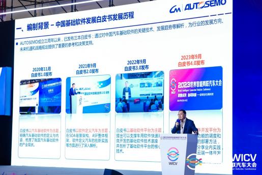 | 李丰军 中国汽车工业协会软件分会理事长、AUTOSEMO轮值主席、中汽创智CEO: 《中国汽车基础软件发展白皮书4.0》,根据AUTOSEMO的115家单位研发成果,白皮书以整车软件开发平台为主题,围绕跨域功能的调度和融合、高效开发的部署方法,并剖析了关键技术,分享业内优秀实践,助力构建支撑车云端一体开发的平台。 |