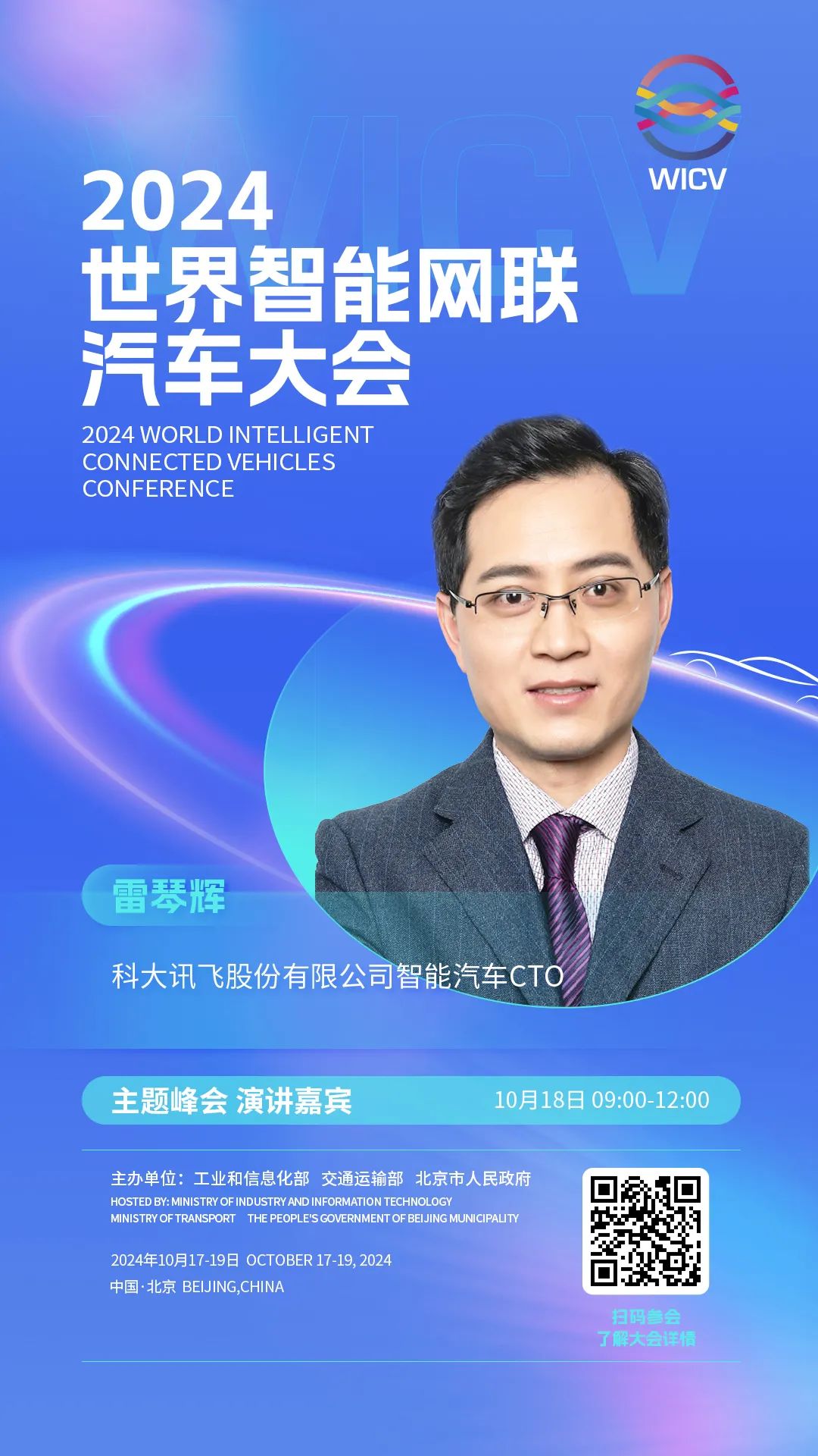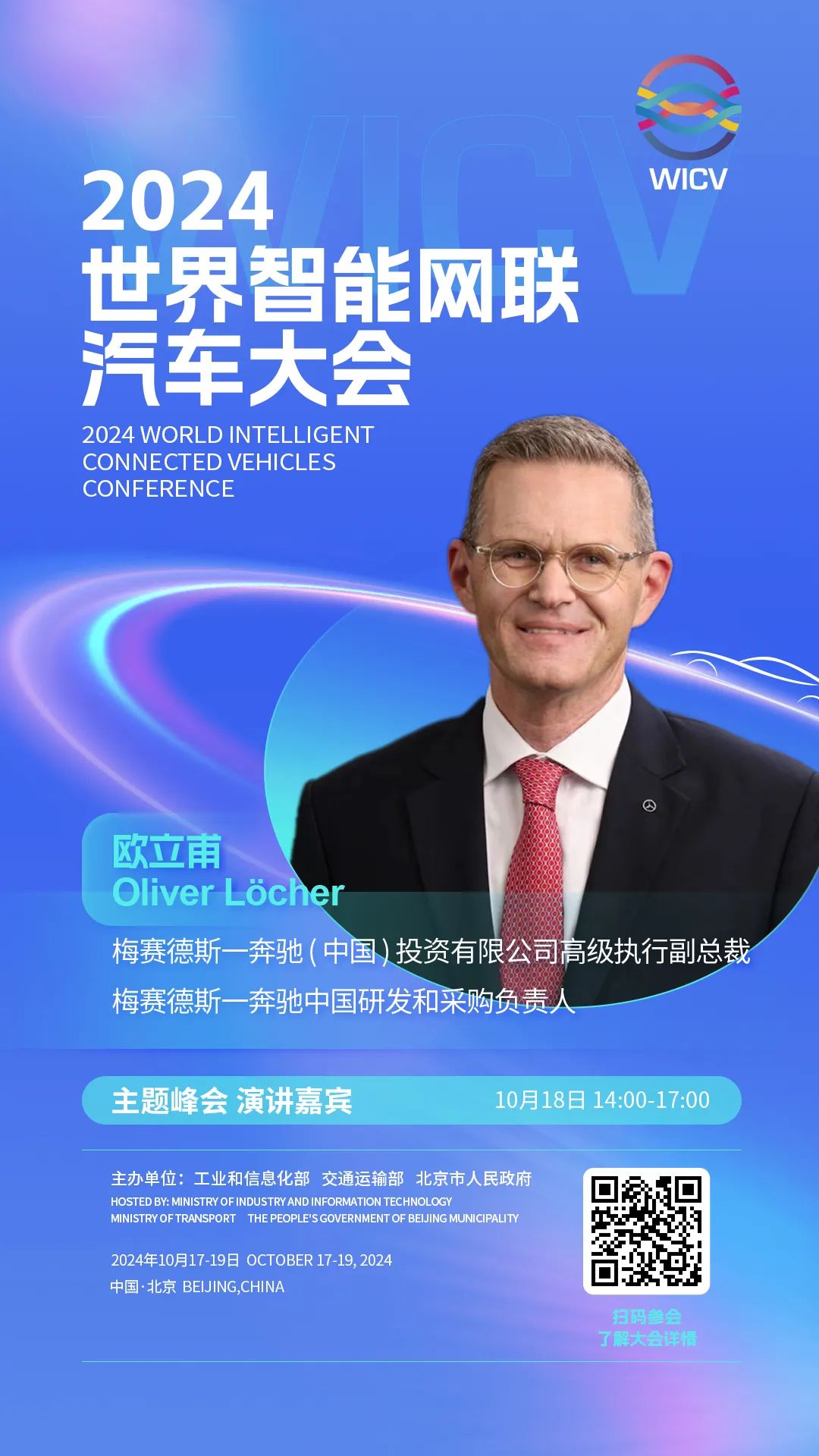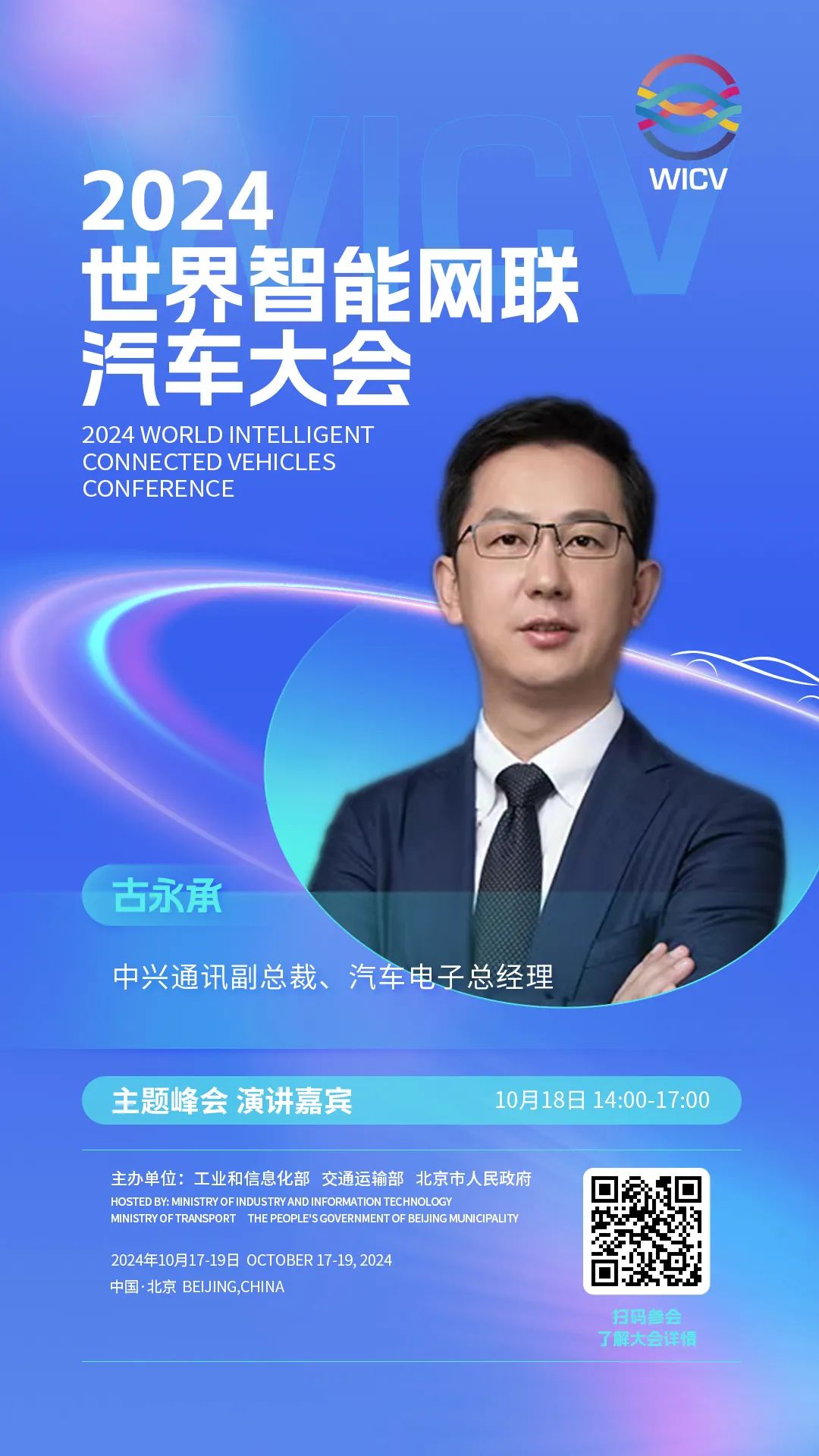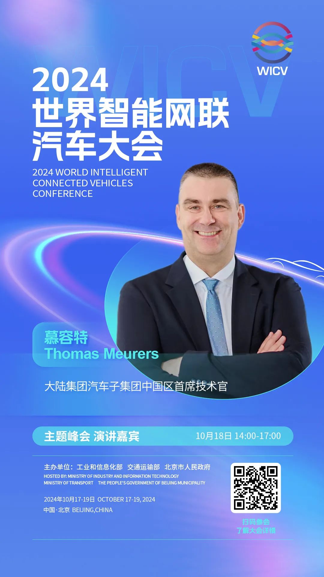世界智能网联汽车大会(英文简称WICV)是我国首个经国务院批准的国家级智能网联汽车专业会议,自2018年起,已连续成功举办六届。2024世界智能网联汽车大会由工业和信息化部、交通运输部、北京市人民政府共同主办,将于10月17-19日在北京召开。