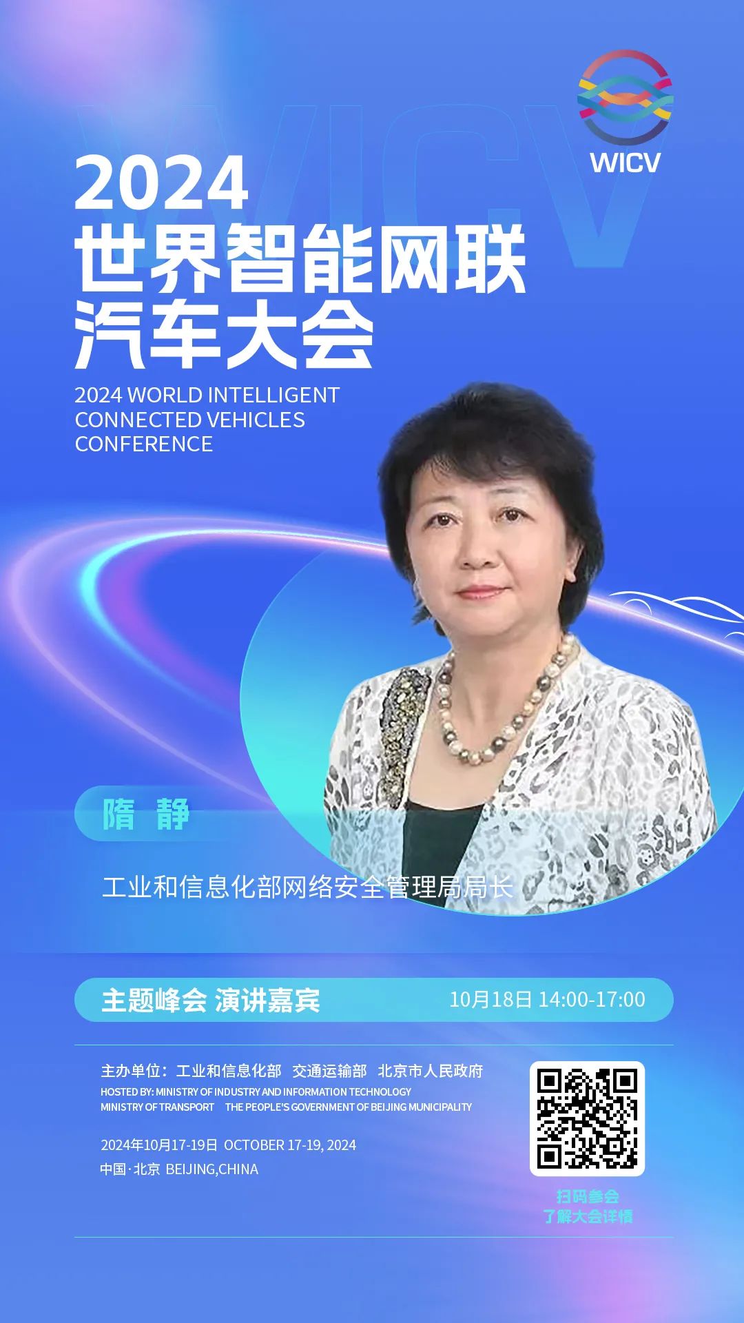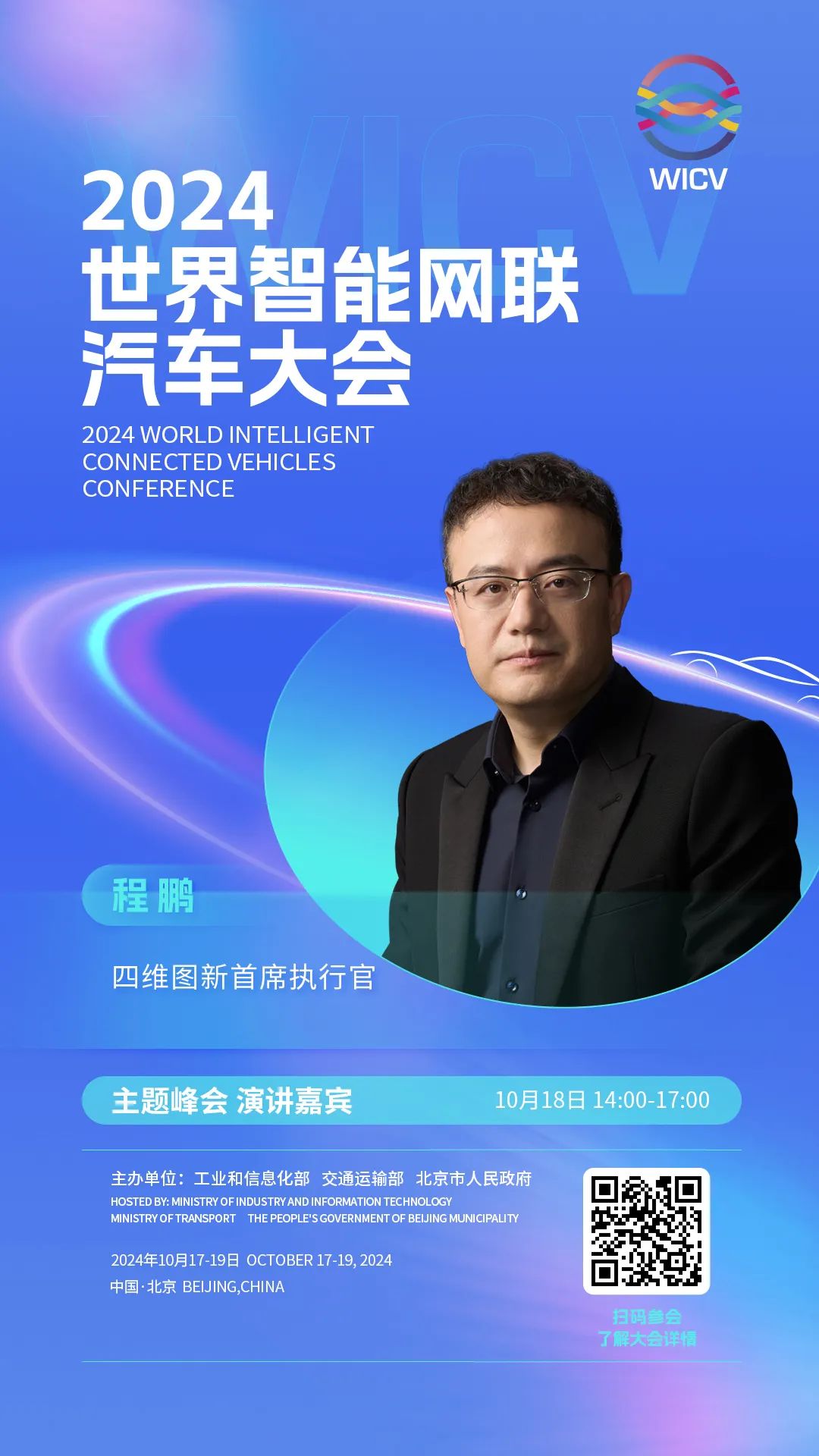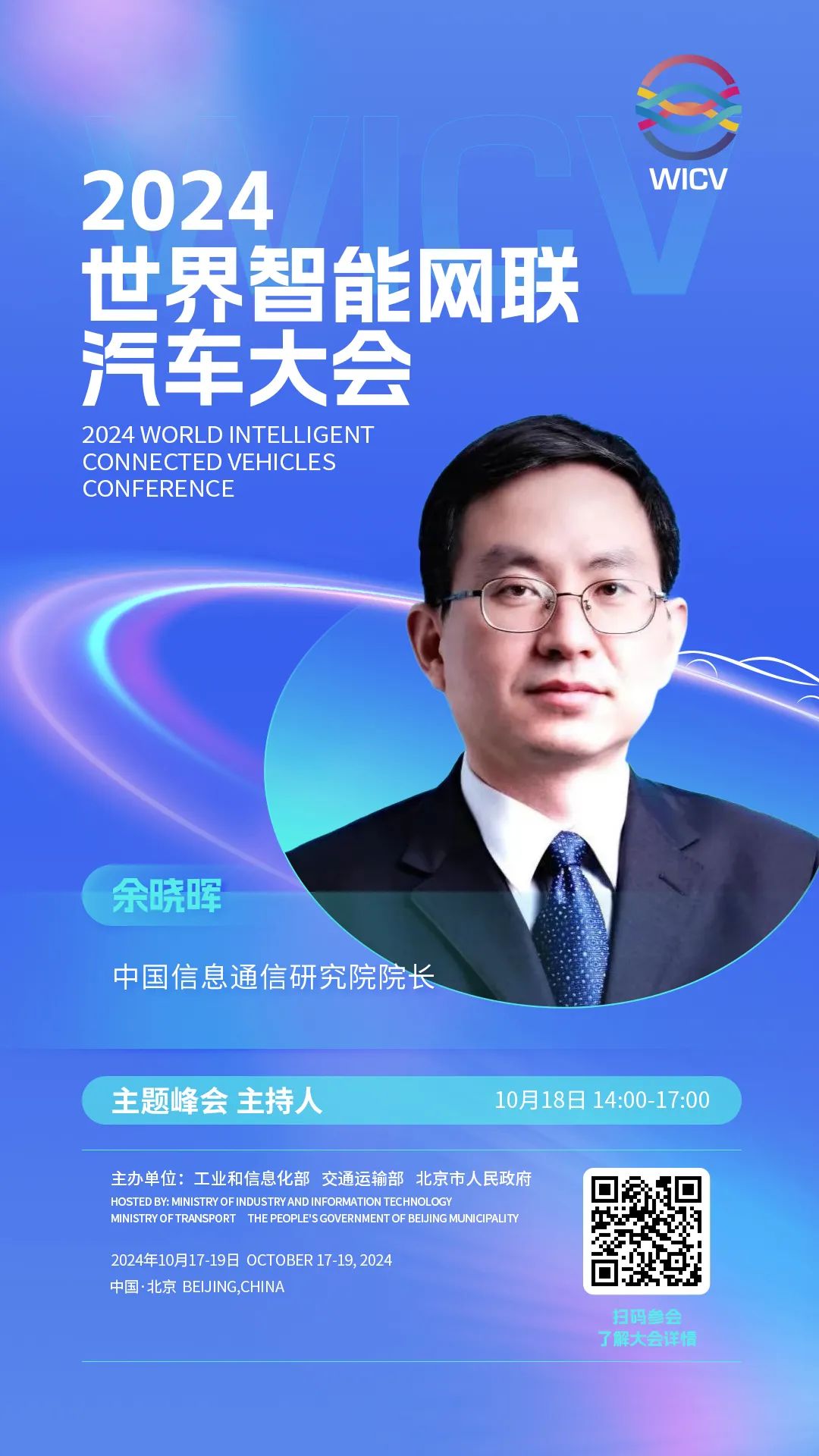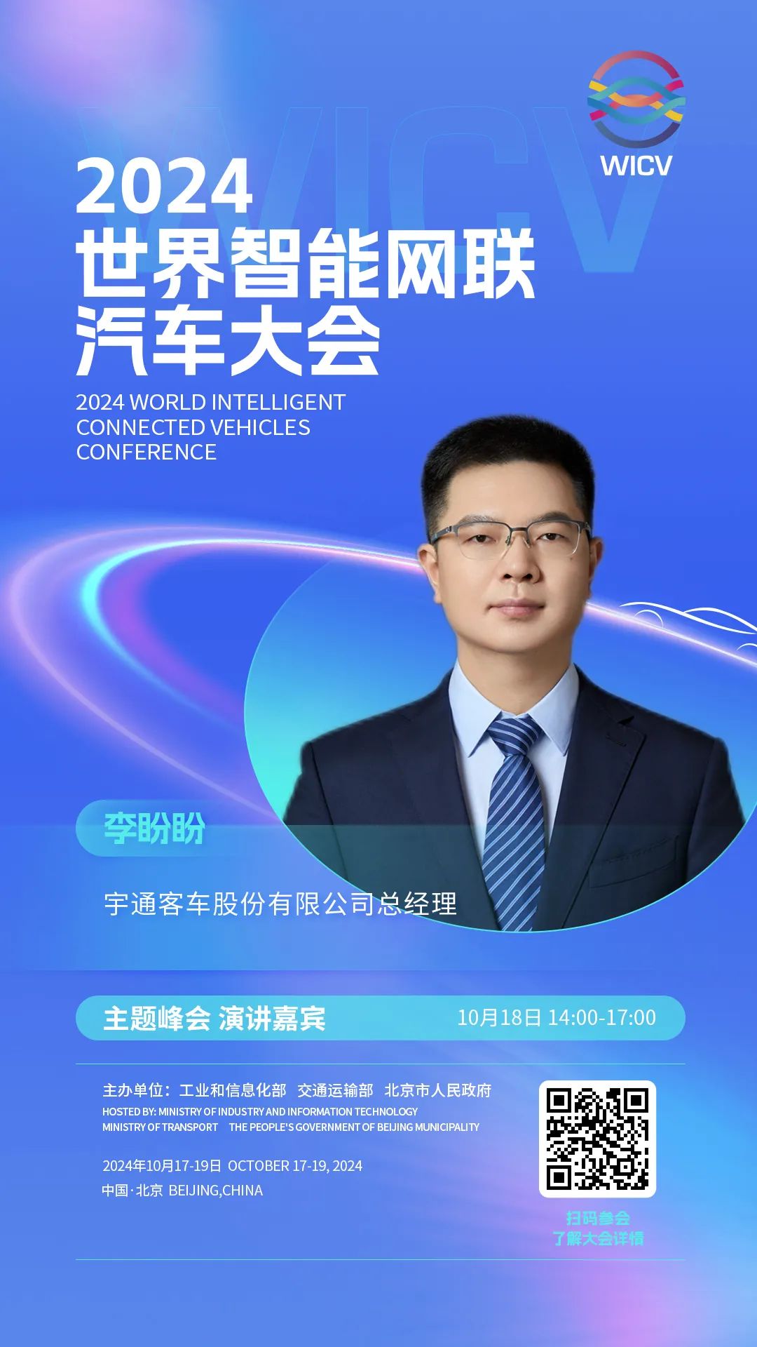世界智能网联汽车大会(英文简称WICV)是我国首个经国务院批准的国家级智能网联汽车专业会议,自2018年起,已连续成功举办六届。2024世界智能网联汽车大会由工业和信息化部、交通运输部、北京市人民政府共同主办,将于10月17-19日在北京召开。