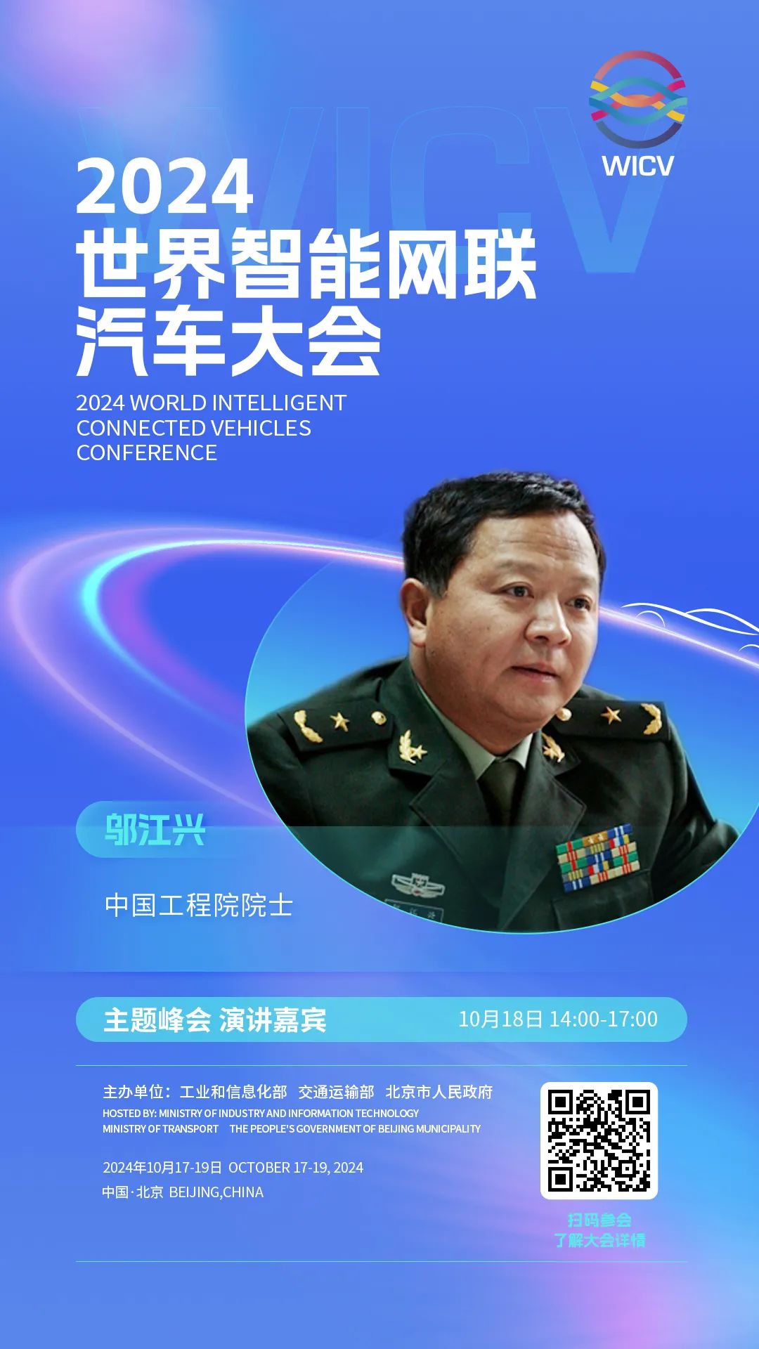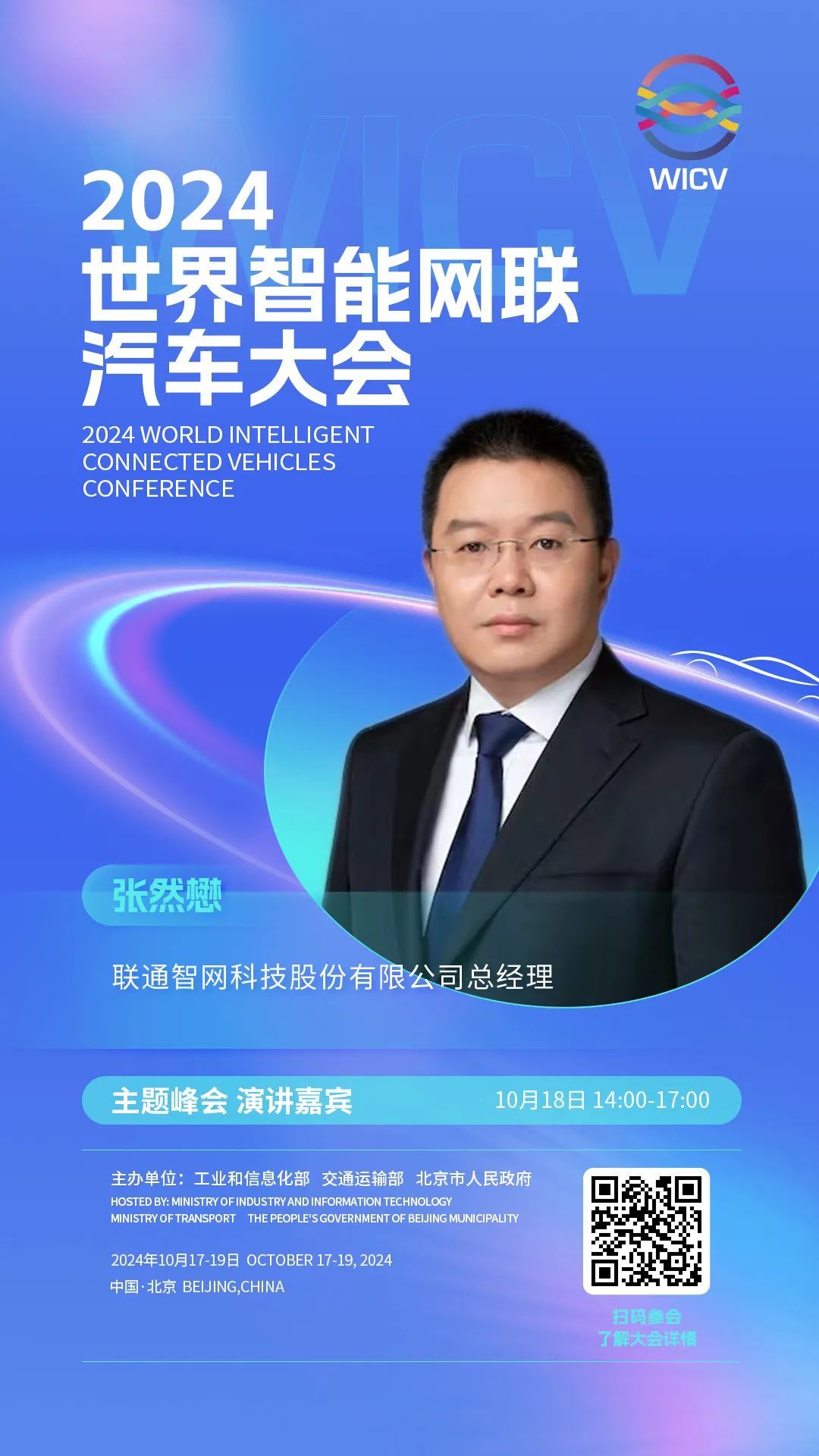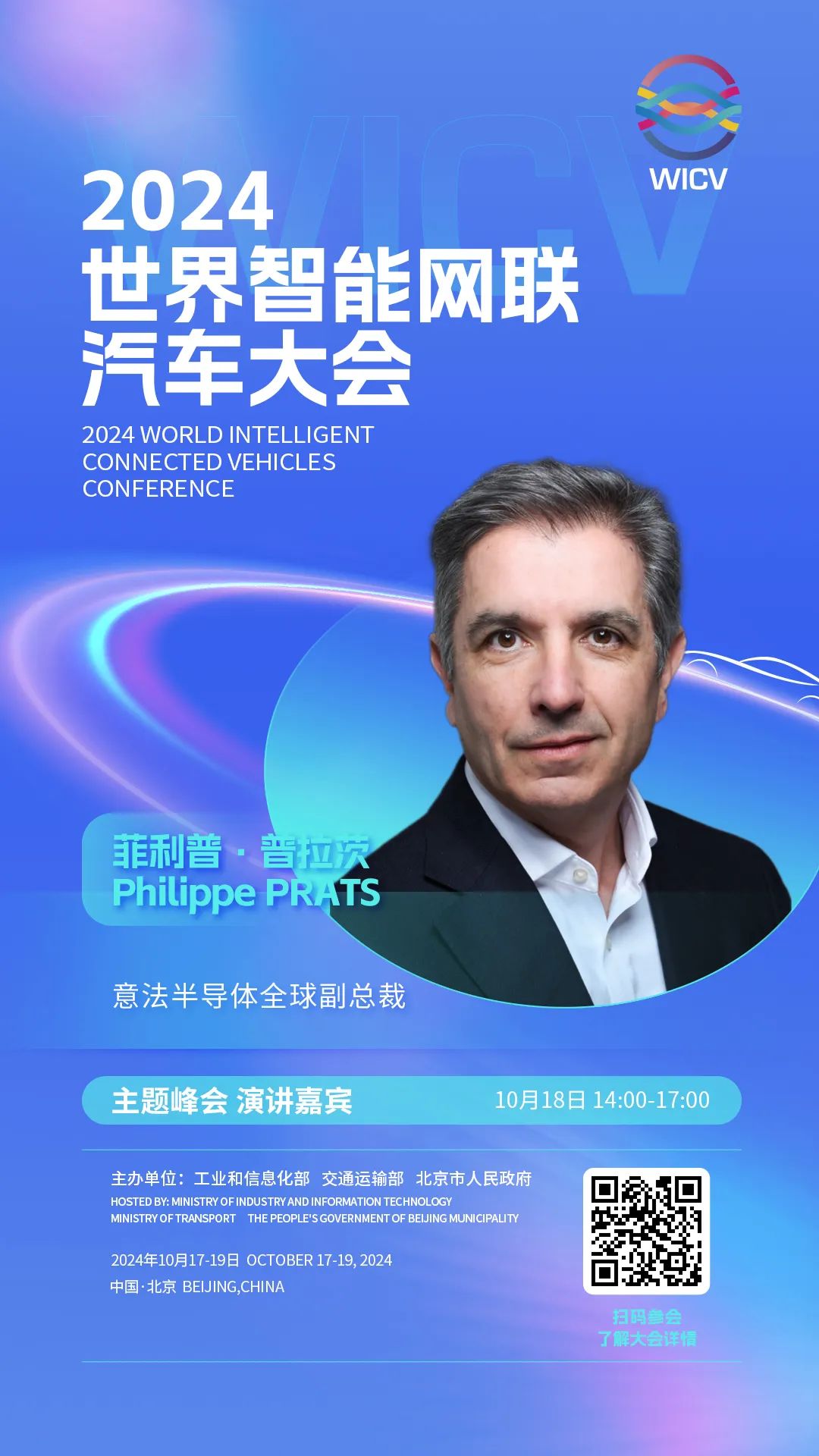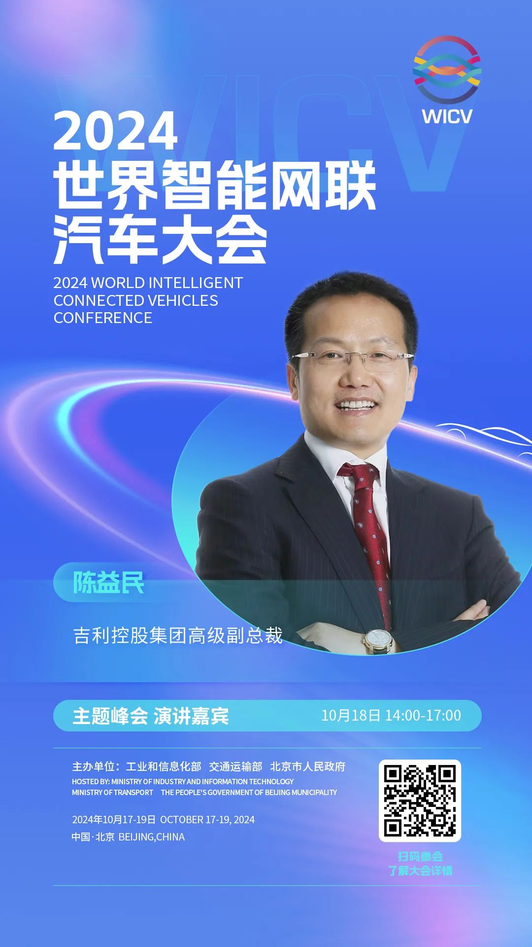世界智能网联汽车大会(英文简称WICV)是我国首个经国务院批准的国家级智能网联汽车专业会议,自2018年起,已连续成功举办六届。2024世界智能网联汽车大会由工业和信息化部、交通运输部、北京市人民政府共同主办,将于10月17-19日在北京召开。