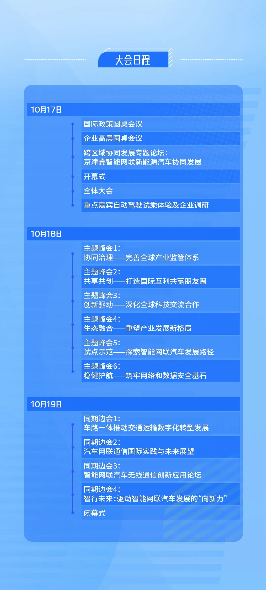 大会以“协同并进 智行未来——共享智能网联汽车发展新机遇”为主题,构筑“3+3+6+N”的大会体系,旨在联通全球政企和行业资源,汇集各方经验和智慧,充分研讨并形成共识,推动智能网联汽车与关联领域深度融合,实现跨行业跨领域协同发展。