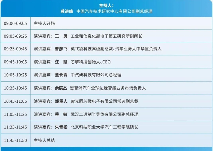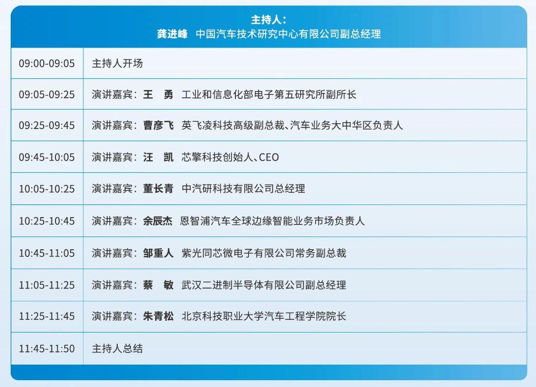 主要内容:针对人工智能芯片、汽车芯片等前沿技术,深入研讨,分享最新研究进展与应用案例,共同探讨智能网联汽车产业发展趋势,呈现全球芯片产业与智能网联汽车产业协同发展的全景视角。