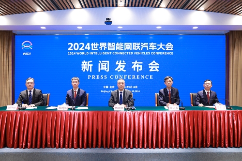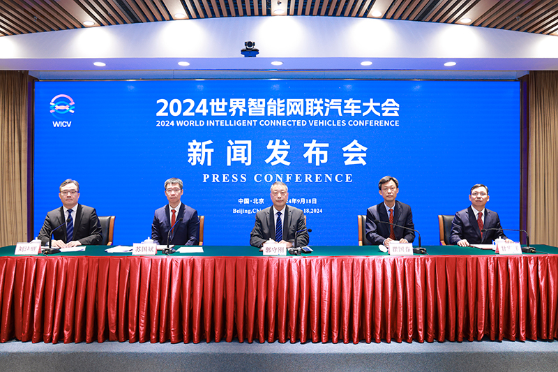 2024年9月18日,2024世界智能网联汽车大会新闻发布会在京召开。工业和信息化部装备工业一司副司长、一级巡视员郭守刚,交通运输部科技司二级巡视员甘家祥,北京市经济和信息化局副局长苏国斌,工业和信息化部装备工业发展中心主任、世界智能网联汽车大会组委会秘书长瞿国春等相关负责同志以及100余家媒体记者出席发布会。瞿国春介绍了大会整体情况及筹备进度,郭守刚和苏国斌分别就媒体记者关心的问题进行了解答,发布会由工业和信息化部装备工业发展中心副主任刘法旺主持。